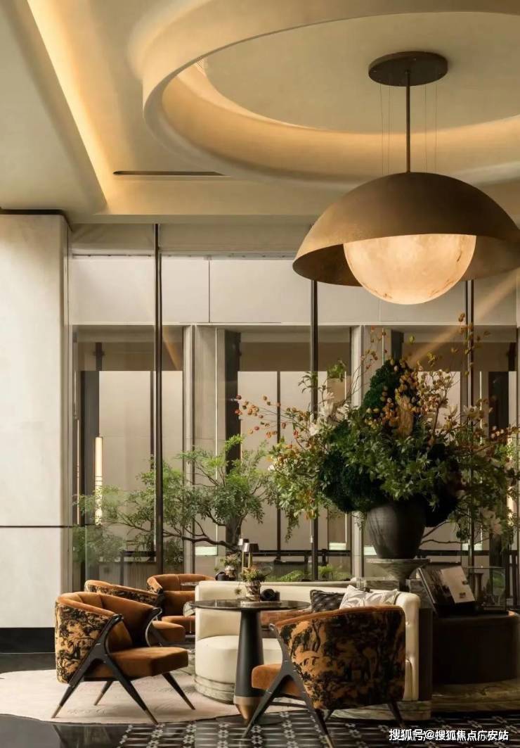 一汪深邃的「宇宙之心」漩涡水景,灵感源自梵蒂冈博物馆举世闻名的双螺旋楼梯,模仿宇宙星系流转的宏大景象,纳藏天地万物生生不息的力量。