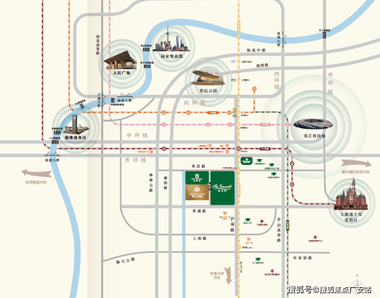 并且,康桥凭借区域内的中环线、S20 、11号线、18号线等道路交通设施,把康桥和陆家嘴、北外滩、前滩、张江科学城等城市重大CBD连成一条黄金轴线。