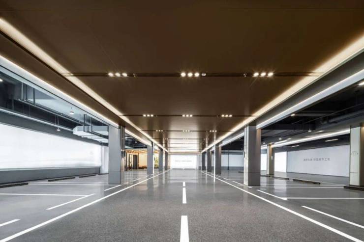 步入地库后,五星级酒店式敞亮格局扑面而来。主干道采用艺术化地面划线,配合暖金色灯光系统,营造出奢华精致的视觉体验;