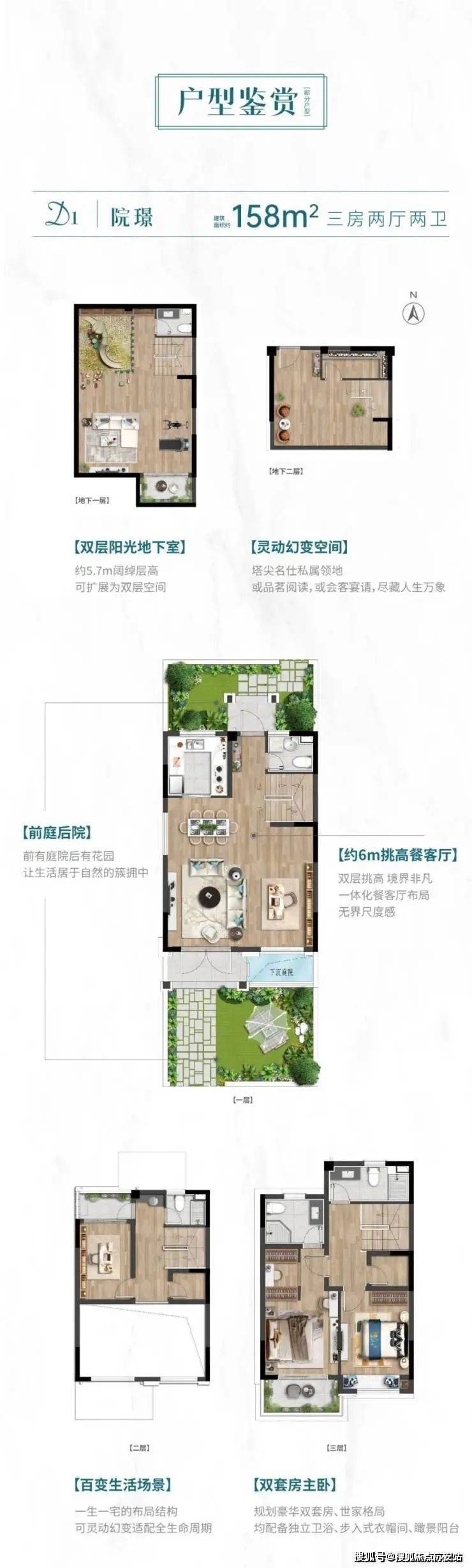 同时更缔造出建面约150-160㎡别墅低密住区与90㎡洋房,包括3F联排别墅+5F臻品叠墅+8F墅质洋房等低密居住形态,无一例外都是高端纯粹的产品。其中联排别墅更是打造出了前庭后院的森活场景,并赋予了约6m挑高餐客厅、双层地下室、双套房主卧...产品力十足,可以说是松江天花板级的空间品质。