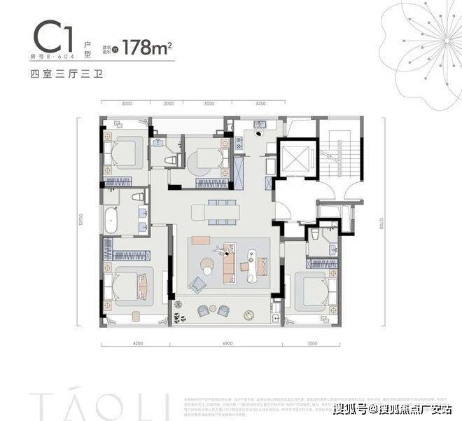 规划主力建筑面积约108-178㎡户型,标准层高约3.1米。定位纯粹品质改善社区,户型设计引入「无界方厅」创新理念营造互动,开放自定义的居住空间。