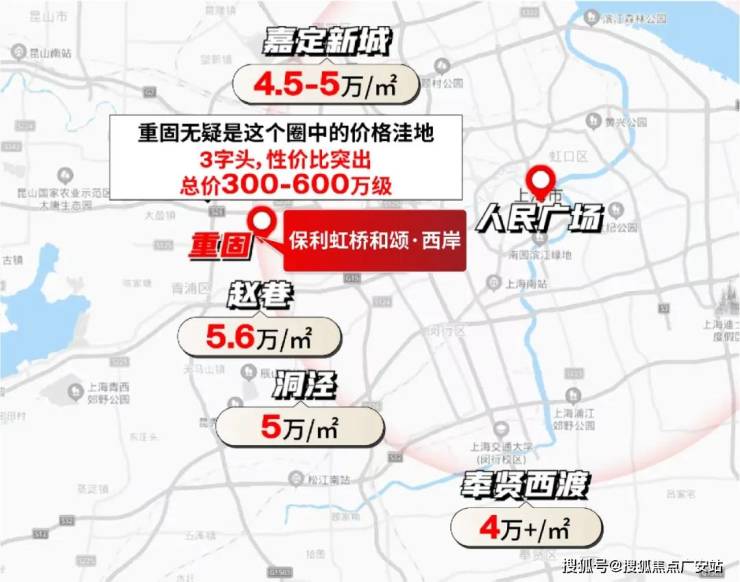 若以市中心为圆心,重固与赵巷、洞泾处于同一半径范围内,但后者房价已达5-5.6万/㎡,而重固仅3字头。