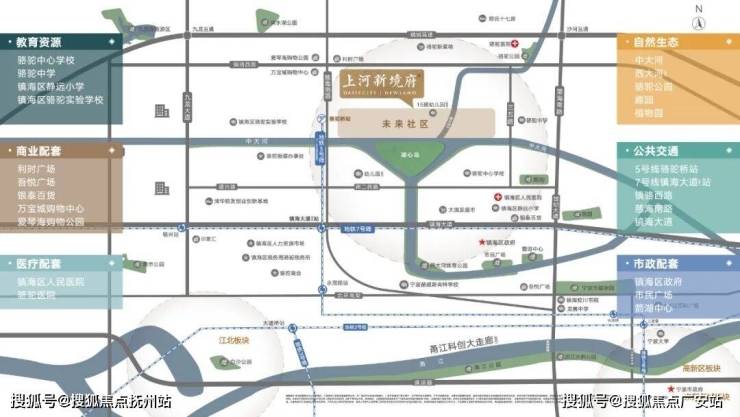 上河新境府府,踞守镇海新城板块,“十四五规划”将镇海新城与泛三江口、东部新城、鄞州南部并列为“四大核心区”,确立了“镇海—高新区—东部新城—东钱湖”的宁波大东部新发展轴,千亿规划蓝图之下,跃居城市价值高能级区域。同时,扼守甬江科创大走廊联动轴上,省级战略加持,高精尖产业汇流,占据产城融合的战略要地,是宁波打造全球智造创新之都的核心引擎。