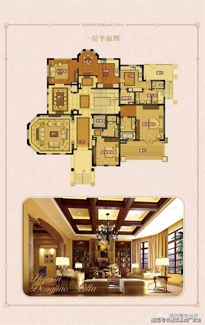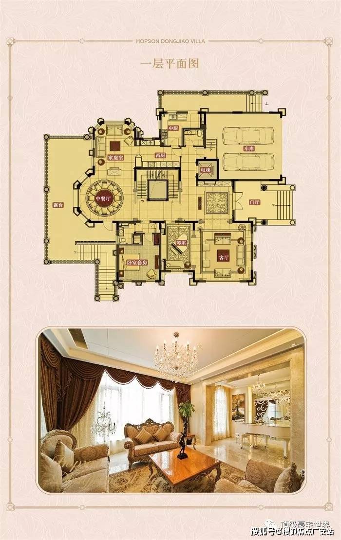 一楼层高3.8米,设有一个套房、一个书房,客厅、中西厨、餐厅与家庭室、佣人房……整个房型四面采光无死角。