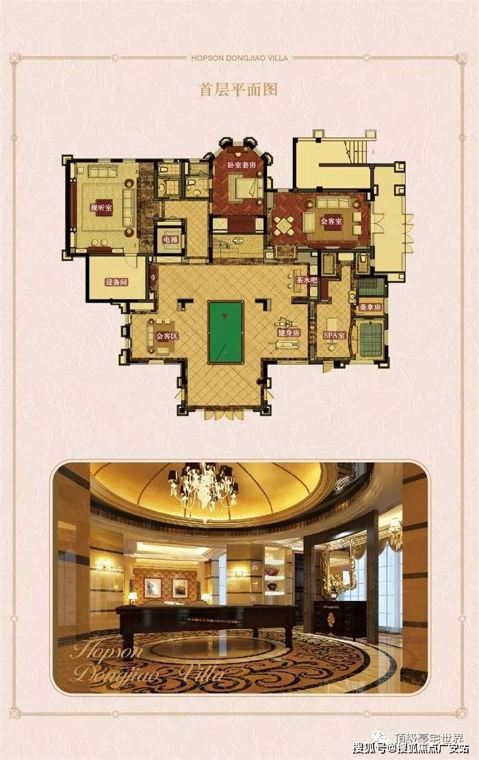 ①、A(金轩):(挑高8米,面宽8.3米,地下室内游泳池)