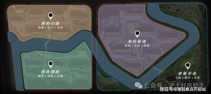 比如,三座岛屿社区都有不同主题,并设置了 非常丰富的景观节点。