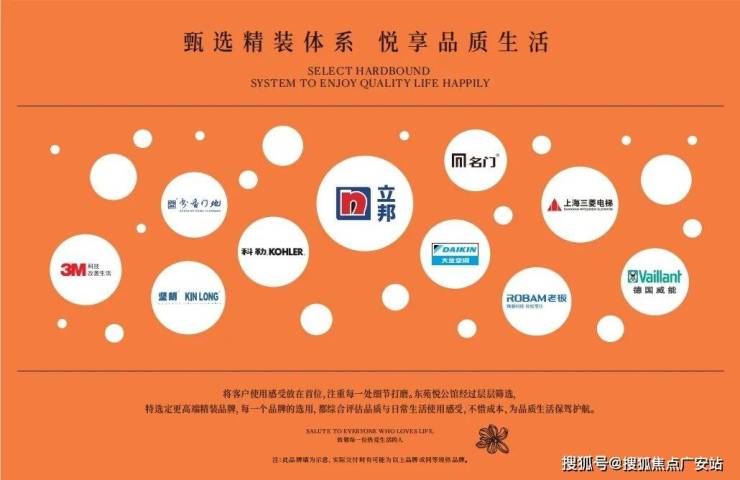 大金VRV中央空调、博士地暖、3M净水系统、科勒整体厨房(含成套高级厨房电器)、科勒高仪卫浴系列等。