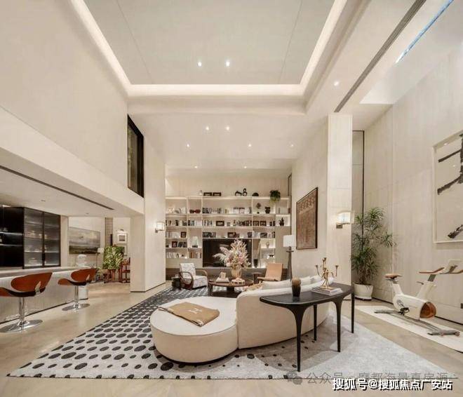 约1200㎡的架空层和会所空间,架空层和会所空间功能齐全,整合了书吧、轻办公、社交、运动4个最核心的功能区,整体低调又奢华。