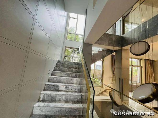 项目产品户型上,客厅双层挑空6.4米层高;地下室3.3米层高,南北双采光井设计;户户景观露台,直面佘山。