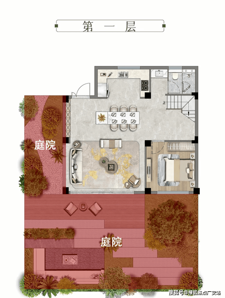 约7.9米南向开间,外接私家花园,有天有地,独门独院,这里既是一家人互动交流的温馨空间,也是宴请宾客、家庭聚会的自在场域。这种安全性和私密感,是其他业态产品所达不到的。