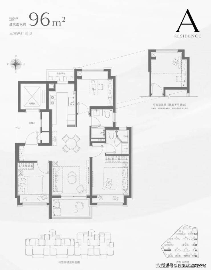 建筑面积约96㎡3房 经典飞机户型 精致进阶