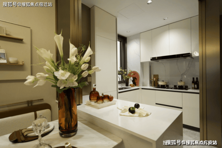 上海普陀中环桃源里售楼处电话☎:400-8878-824(售楼处预约看房热线)厨房是开放式的(也可封闭),不仅拉大了视觉尺度,更让你在做羹汤时,能与客厅里的家人随时互动,打破了原本厨房的“孤独感”,赋予更多情感交流。