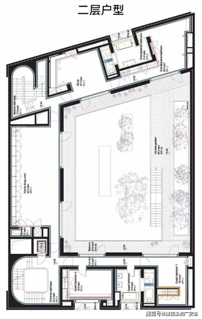 项目由12栋中西合璧的四合院组成,其中12号是楼王,13号是物业管理用房。11栋可售房源的面积段约为1000㎡-1500㎡,其中4栋为精装修交付,7栋为毛坯交付。