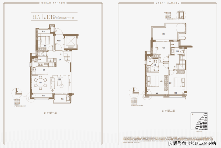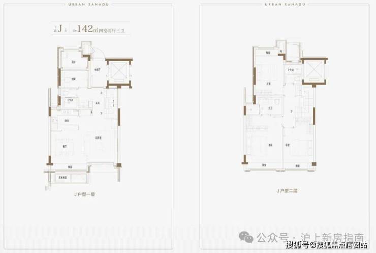 建面约139㎡上叠户型,三层是会客区,四层是居住区,阳台+露台+多个飘窗设计,附加空间非常大,在别墅类产品中实属罕见!