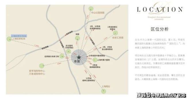 距离虹桥交通枢纽6.5公里左右,出差便利。产业、交通、配套齐聚,且周边就是古北壹号、古北臻园,圈层纯粹!
