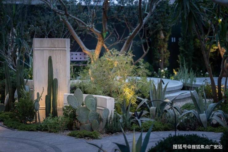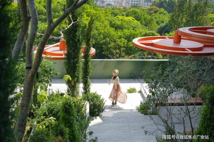 绿宝石花园以莫奈《睡莲》为灵感,打造约30米长的水景花园;林间溪谷则采用椭圆水池设计,汲取克罗耶《斯卡恩的夏日傍晚-海滩散步》的艺术意境,营造水景与休憩空间的交互体验;城市露台位于6号楼下,面向中兴公园,异域植物环绕的阶梯提供从高向低的景观视野,塑造城市与自然的层次感。