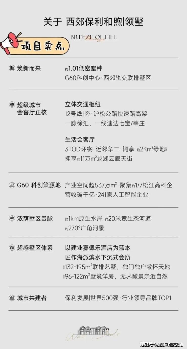 保利·西郊和煦领墅售楼处电话: 400--969--2958松江第二条史诗级轨交落地—12号线西延伸段3站进闵行5站到莘庄/七宝8站漕河泾