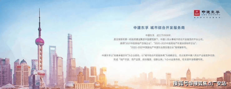 【国匠担当 人居革新者】中建东孚是中建八局从事城市综合开发服务的专业地产平台,以“拓展幸福空间”为企业使命,响应国家新型城镇化战略,筑就全方位品质人居。