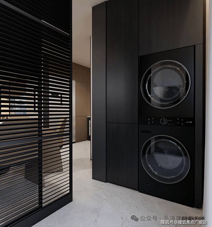 定制洗衣柜与吊柜,嵌入洗衣机与烘干机,兼顾实用与美观。