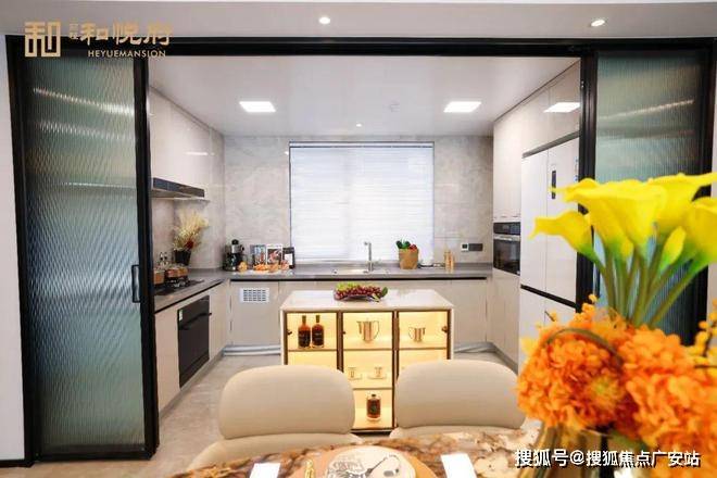 三个朝南开间带来充足的阳光,U型厨房布局,烹饪时刻优雅自在,且与户门距离适中,避免了油烟困扰。