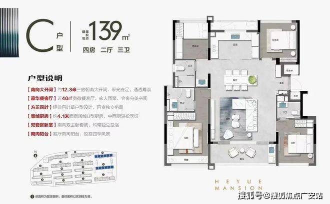 入四叶草户型,它的南向尺度拉大到了约12.3米,因此拥有了超宽幅的大客厅,整个客餐厅空间达到了近40㎡!约139㎡户型还有一个很大的亮点,设计了双主卧套房!南向两个卧室均带独立卫生间,整个户型拥有3个卫生间。