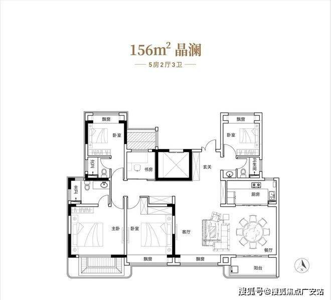 约99平3房户型,宽厅设计,空间感十足,搭配超大阳台,景观视角绝佳,U型厨房,全屋飘窗。
