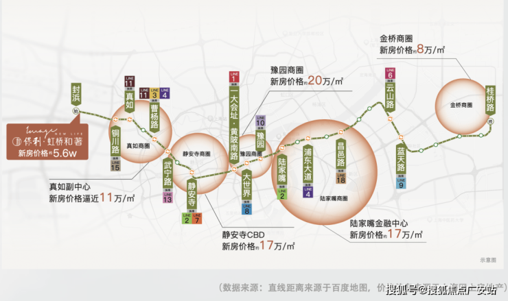 同时,相较14号线沿线房价,新天地约21万/㎡、静安寺CBD约17万/㎡、豫园约20万/㎡、陆家嘴约17万+/㎡、真如约11万/㎡……