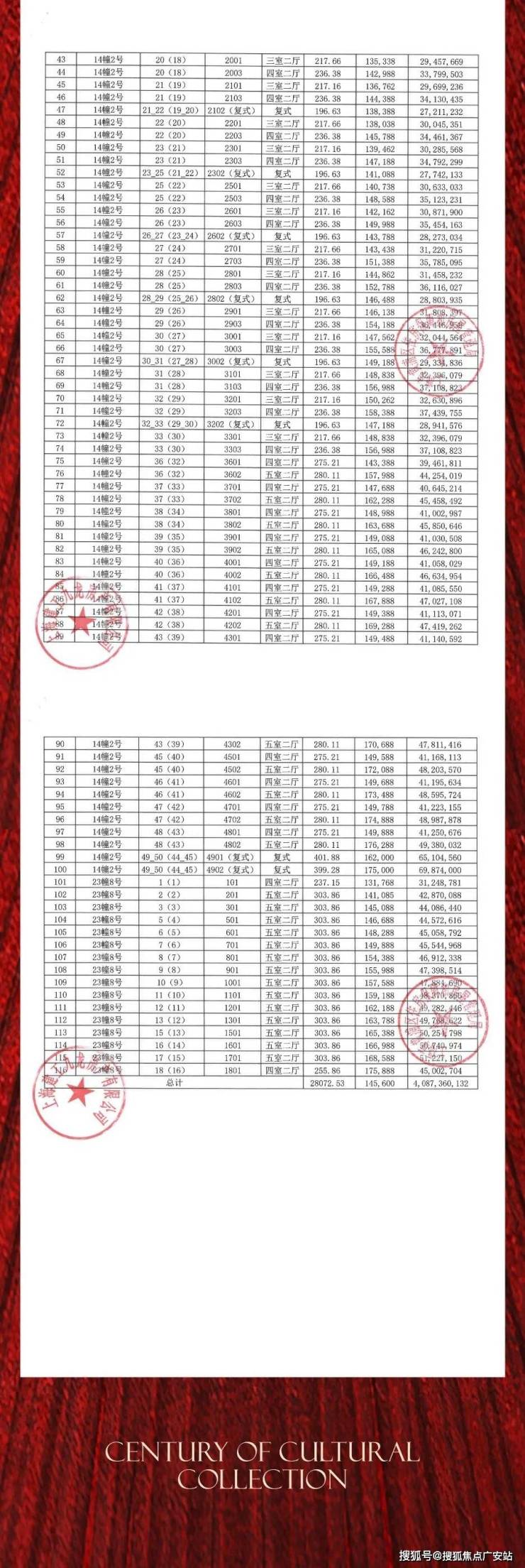 一房一价表: