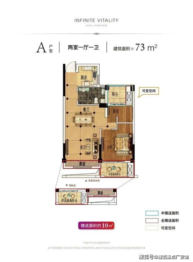 【73方】对于小户型来说,73㎡的户型,也做到了两室两厅一厨一卫,其中它的阳台是云锦城特有的“双层挑高”。相比于“一步到位”的购房者,这类户型更适合刚需家庭。