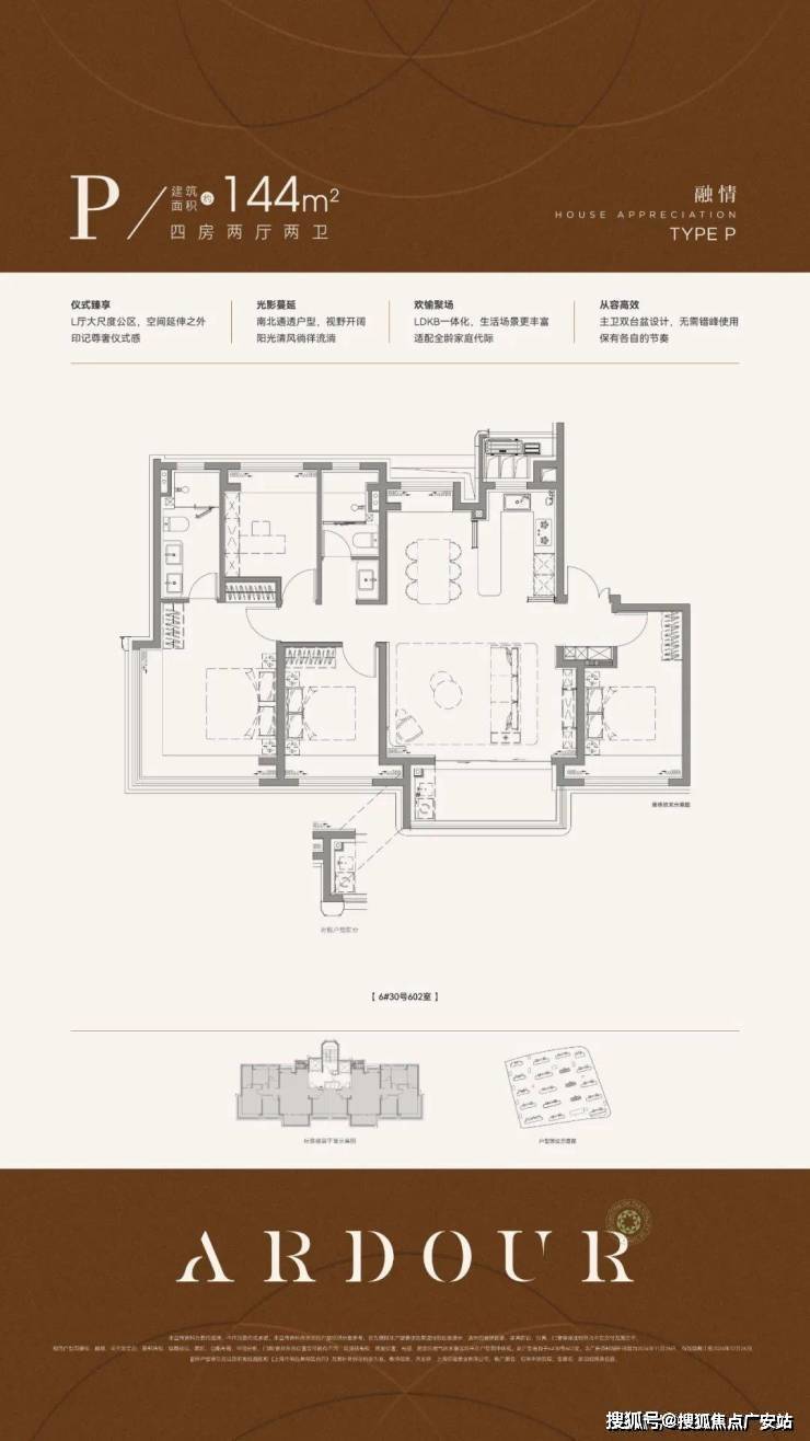项目采用鎏金塔冠造型,灵感来源于国际邮轮港的曲线,流光美学的外立面,既有辨识度又有质感,是未来业主身份的象征。阳光倾泻而下,在不同光影与环境下,让家成为一件艺术品。