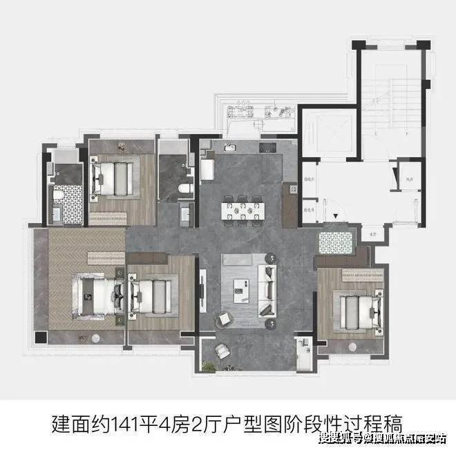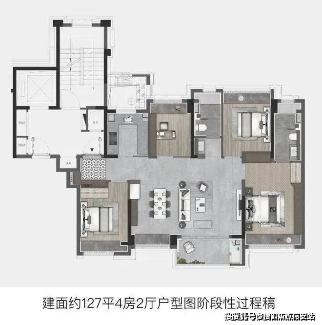 建面约127㎡直接进阶4房,功能性拉满,适配当下越来越多的二胎或三代同堂家庭。