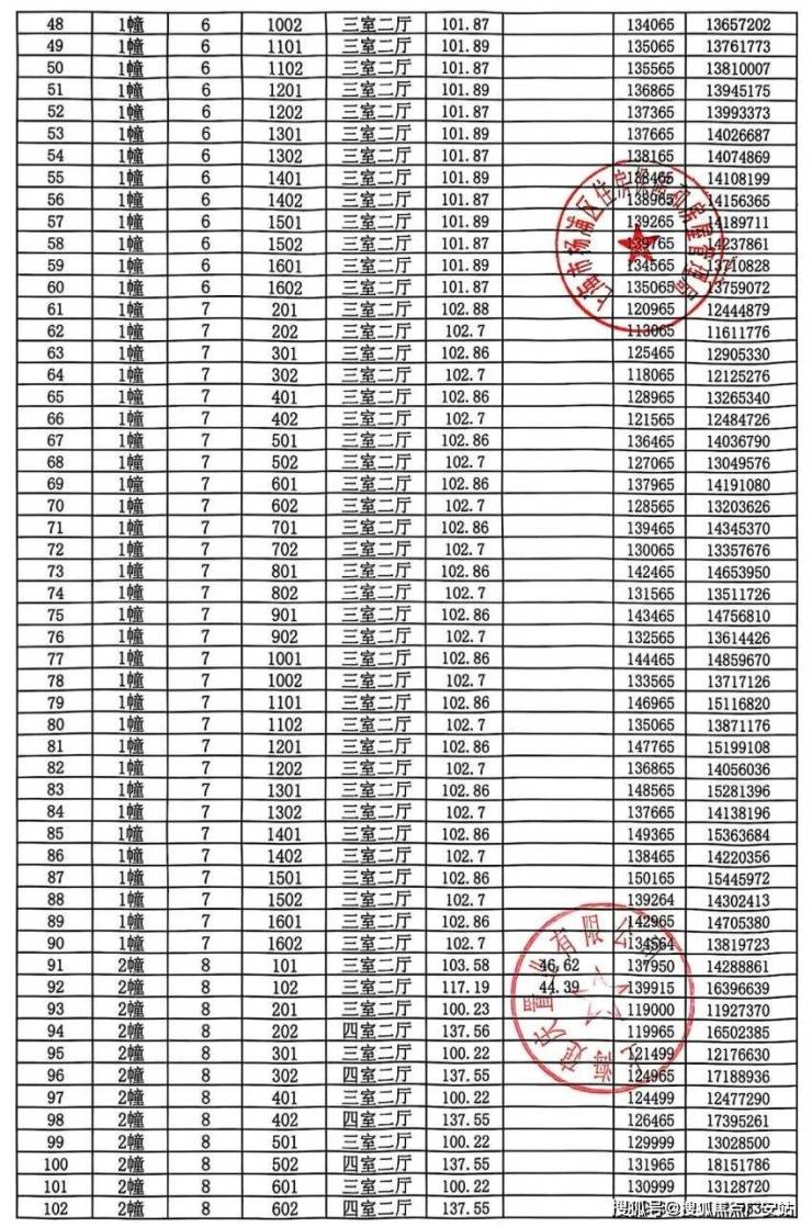 建面约100㎡3房中间套,起价约1136万,1200-1300万就能瞰三件套,高区约1380-1470万;