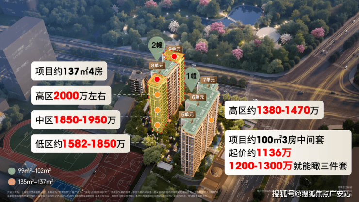 ②、圈内能瞰三件套的3房,往往需要选中高区房源,起步价约1700万,而项目中低区1200-1300万的房源就能实现瞰三件套的需求,进一步放大了价格优势。