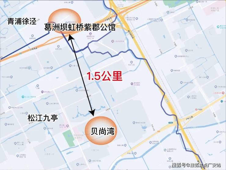 再来看九亭和它旁边的徐泾。位于九亭的贝尚湾目前挂牌均价约7.2万元/㎡;而距其约1.5公里的葛洲坝虹桥紫郡公馆挂牌均价已经来到了9.9万元/㎡,每平相差了2.7万元。