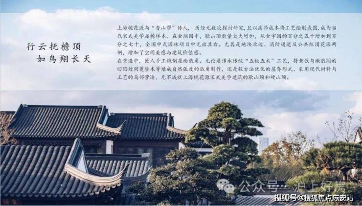 同时,建筑采用宋代宫殿,建筑出檐宽广,檐下增加斗拱、镂空雕花、甘蔗脊、阑额等元素,约2/3宅园设置入户连廊,为全国之最,雅贵造极。「上海桃花源四期」售楼处电话400-8118-224