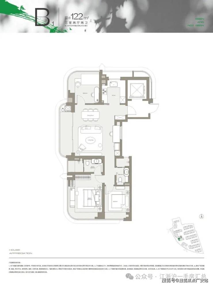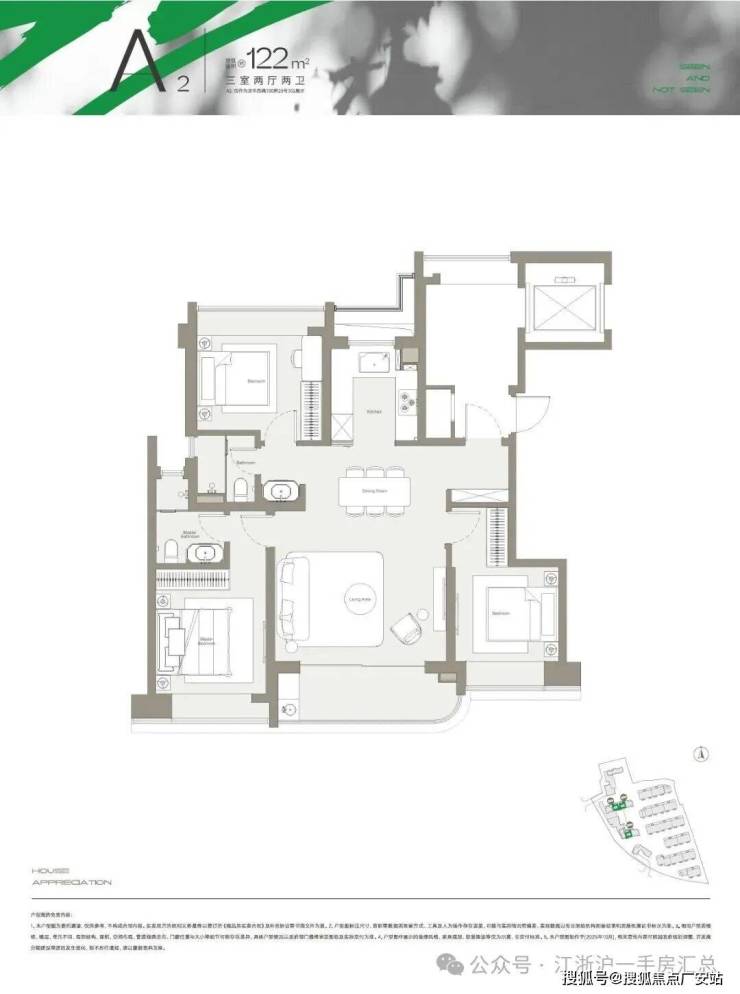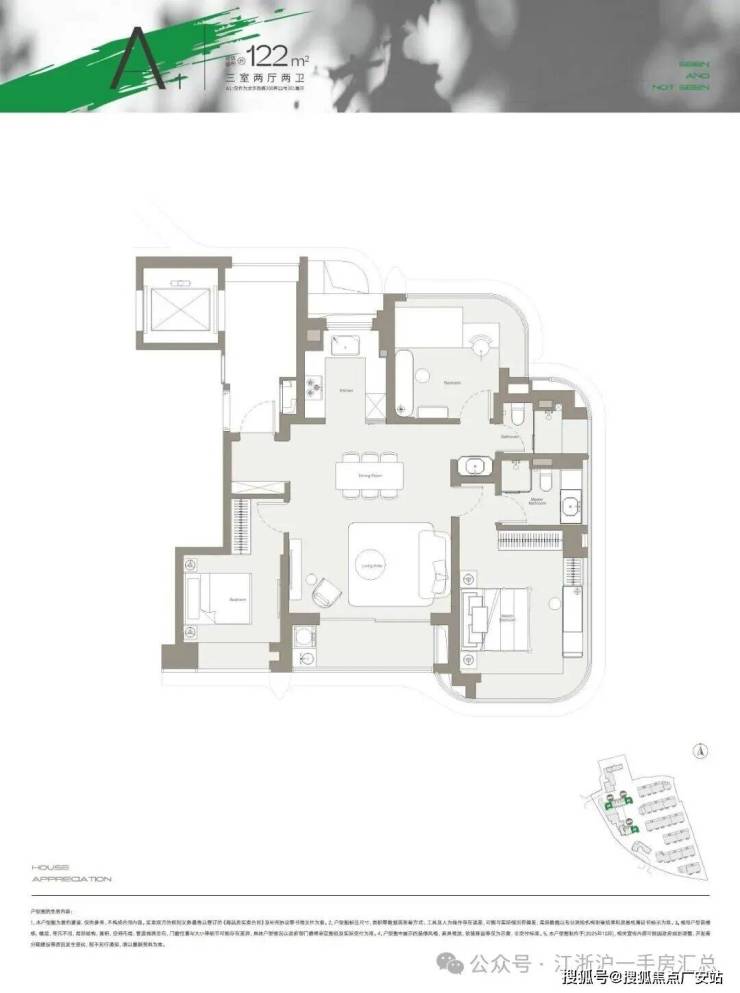洋房特色(约122㎡):四房两厅两卫,客餐厅一体化超35㎡,全景落地窗,采光通风极佳,长辈房与儿童房分区
