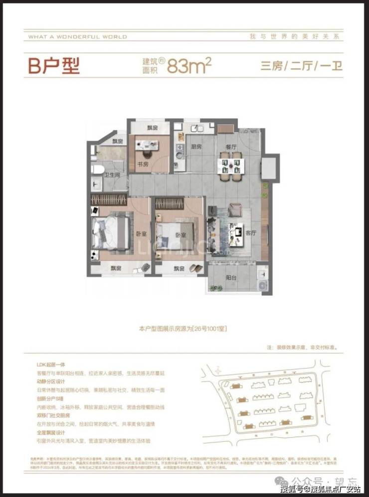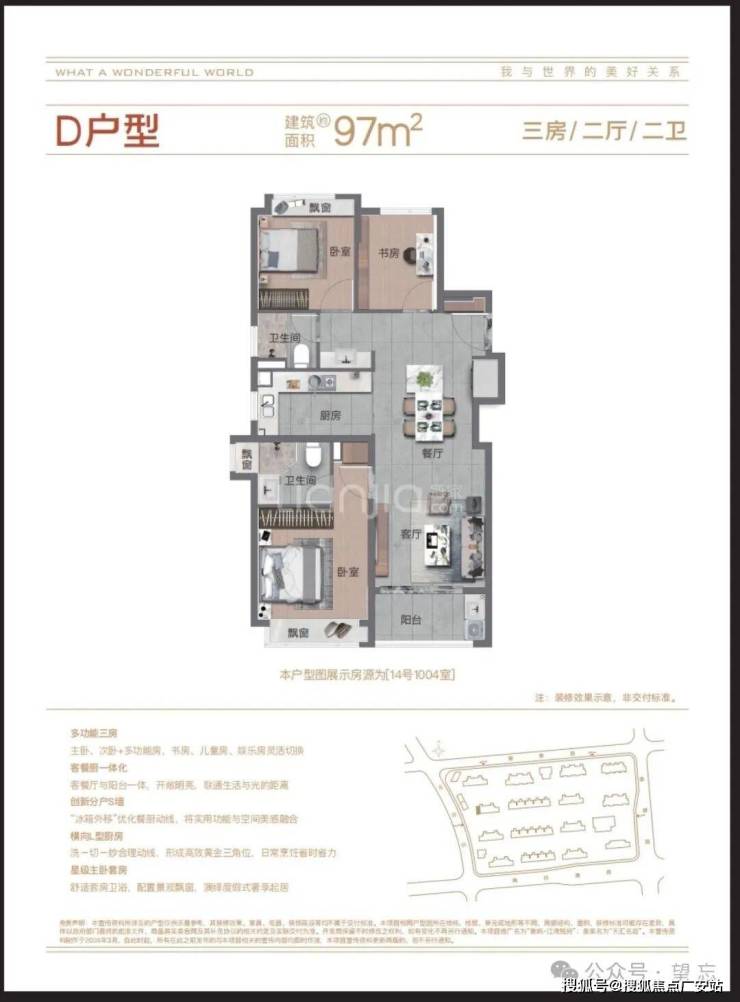 【建面97㎡3居】305-343万,3室2厅2卫, 南朝向