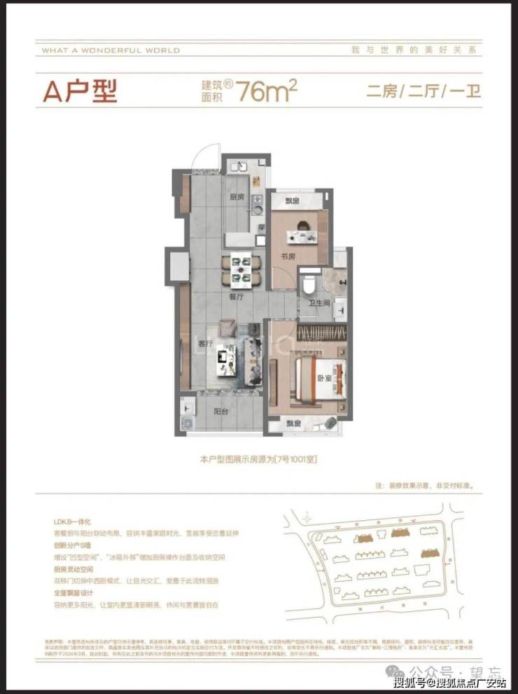 76㎡ 两房两厅一卫:276-300 万|精装全配,刚需入门,得房率 78%