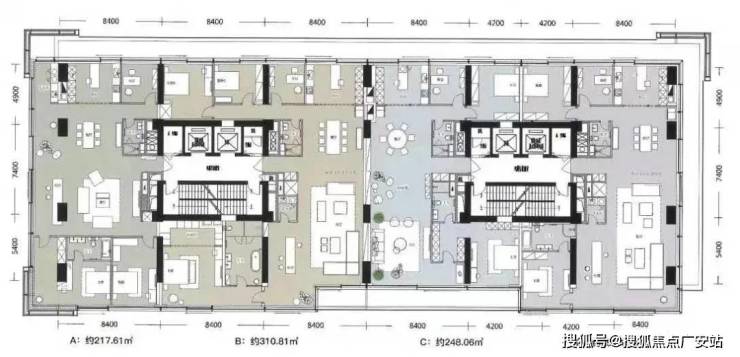 • 面 积:200.96㎡-𝟐𝟓𝟎.𝟏𝟒㎡(交付三房两厅三卫)