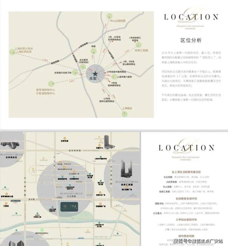 一、区位和交通:1.1、我们地处闵行长宁交界的古北板块,项目依托虹桥交通枢纽和长宁徐汇商圈,交通便利配套成熟,是上海第一个大型高标准的国际豪宅社区。