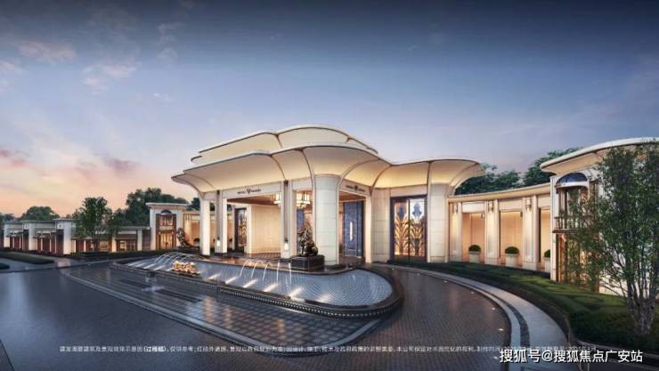 「玉兰门庭」摩登飘逸,环抱式落客前场,大师定制非遗掐丝珐琅门钹,流转温润光华,敬呈归家尊崇礼序,自此启幕生活的华贵序章。