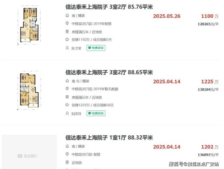 板块二手房方面,建发项目隔壁的上海院子,洋房最新成交价在12-14万之间。
