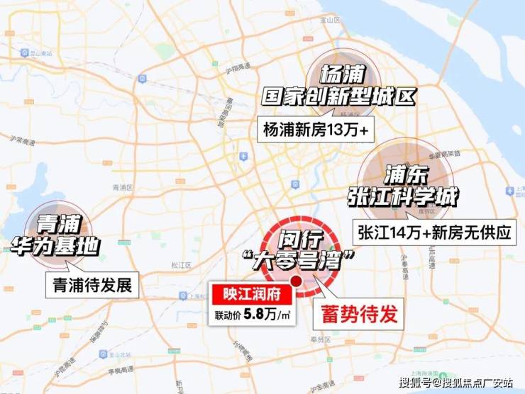 根据规划,上海科创大旗由东西南北四大中心撑起,西部的青浦华为还处于雏形阶段,北部的杨浦和东部的张江房价早已高不可攀。
