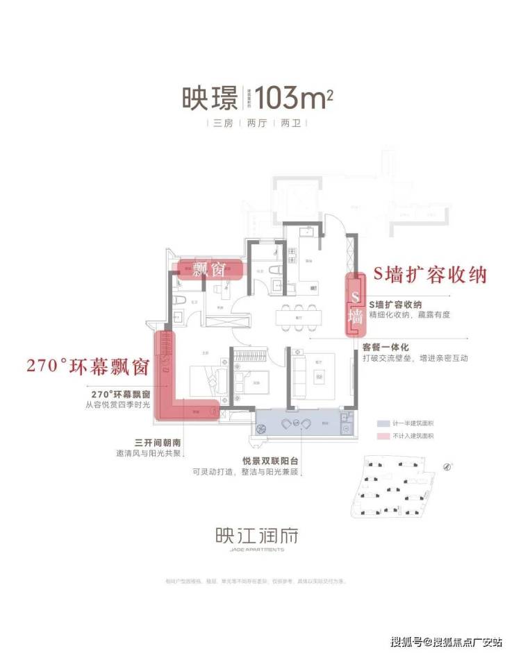 再来看采光视野无敌的建面约103㎡3房2卫边套户型: