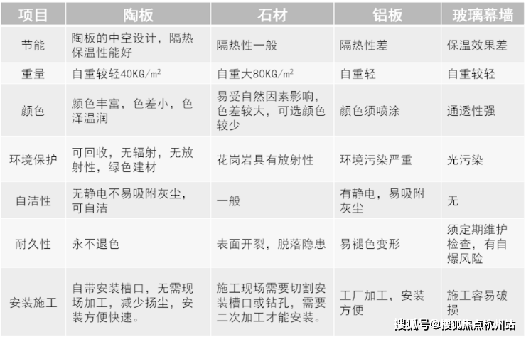 相比于传统石材、铝板等,陶板具有天然优势:
