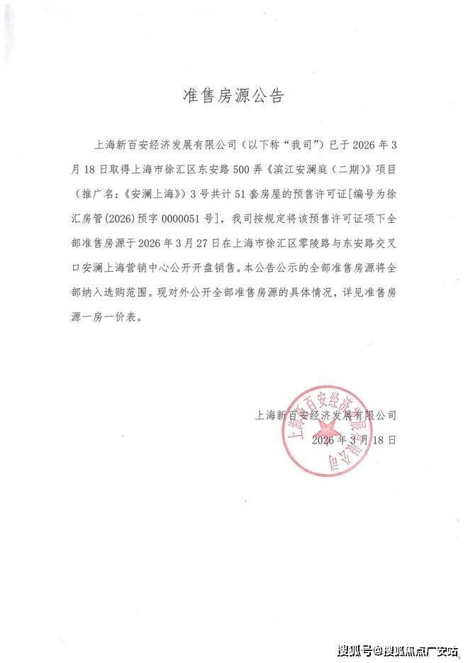 1.本宣传资料为要约邀请,不构成要约或销售承诺,本资料中所展示的所有细节非政府最终审定的方案,户型、建筑(包括但不限于外立面、材质、分割形式、颜色等)、景观(包括但不限于绿化、水景等)、会所等均不作为要约或承诺,最终以政府审定为准。2. 本宣传资料中对项目周边环境、交通、教育、商业及其他配套的介绍旨在提供相关信息,不代表着出卖人对此做出了要约或承诺;相关宣传内容不排除因政府相关规划、规定及出卖人分期规划、未能控制等原因而发生变化。3. 买卖双方的权利义务以双方签订的《商品房买卖合同》及其补充协议、附件等书面文件为准。4. 本宣传资料中部分内容仅在特定户型房源中体现,最终交付以双方签订的《商品房预售/销售合同》及附件等协议为准。5. 本宣传材料中的所有信息及文字仅供参考之用,部分图片曾以电脑修改,宣传资料将视情况进行更新,敬请留意最新资料,开发商在合法范围内保留解释权。6. 本广告文字、图片、数据等素材部分源于网络,内容版权归原作者所有;如有版权使用相关责权,请及时与本公司取得联系。本文内容图片未经准许,严禁转载。7. 本项目开发商为:【上海新百安经济发展有限公司】,推广名为:【安澜上海】,备案名为:【滨江安澜庭】,预售证号:徐汇房管(2026)预字0000051号;本资料制作于2026年【3】月,有效期30天,本公司保留对宣传资料修改的权利,敬请留意最新资料。