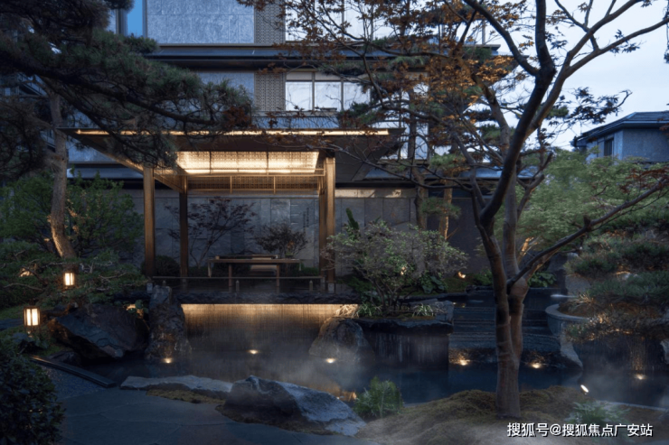 沿风雨连廊漫步,耳畔是流水淙淙,眼前是叠石苍松!约460㎡下沉庭院不像景观,更像一幅您就在其中的立体宋画,一草一木,都可触摸、可对话!