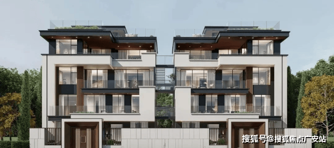 外立面:采用高级灰和白色经典搭配,穿插古铜色的铝板提升质感,大面积使用落地窗和露台,呈现出现代简约的光感外立面,使建筑更灵动轻盈。