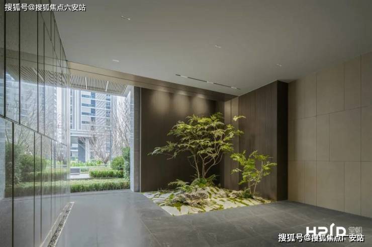 归家大堂的墙面采用了山形的自然肌理,不仅增加了空间的层次感,也让人感受到山间清新的气息。绿植的生机和墙面的山形肌理相互呼应,使空间显得更加完整和和谐,让归家大堂感觉有了凝聚力、吸引力和温度。