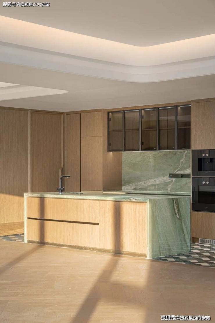 推开“翠境雅奢”的大门,仿佛踏入了一个云端剧场。百达翡翠奢石台面如龙井茶山的青绿,每一道纹理都仿佛在诉说着自然的故事。嘉格纳升降厨电与隐藏式智能酒柜,将烹饪升华为行为艺术。